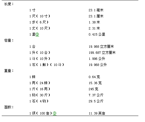 [1] 见德效骞:《〈汉书〉译注》(巴尔的摩,1938—1955),第1卷,第276—280页;南希·李·斯旺:《古代中国的粮食和货币》(普林斯顿,1950),第360页以后;吴承洛:《中国度量衡史》(上海,1937);鲁惟一:《汉代粮食的衡量》,载《通报》, 49∶1—2(1961)。