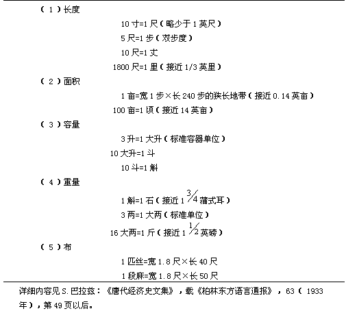 表5唐代的度量衡制